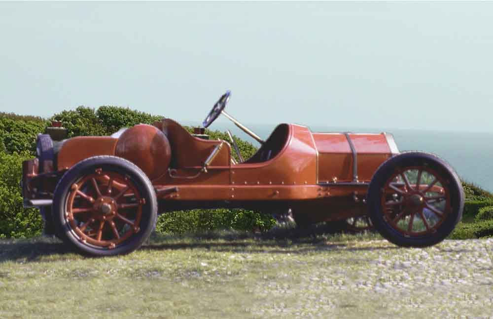This car was capable of the then high speed of 56 mph and was available in a variety of body styles ranging from Landaulet to 2 seater sports models, one of which he raced in 1908 at a track in Savannah, Georgia, in the United States. The engine was a straight four-cylinder 2544cc engine and over a hundred of these cars were sold altogether, some for road use and some intended for racing.