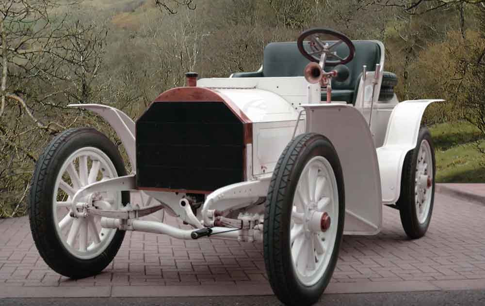 The car was aimed squarely at the upper echelons of society; royalty, aristocracy and even the German Kaiser were fans. An imposing saloon body with big brass oxyacetylene headlamps and bullhorns added to the image, along with the plush coachwork and space for three passengers plus a driver.